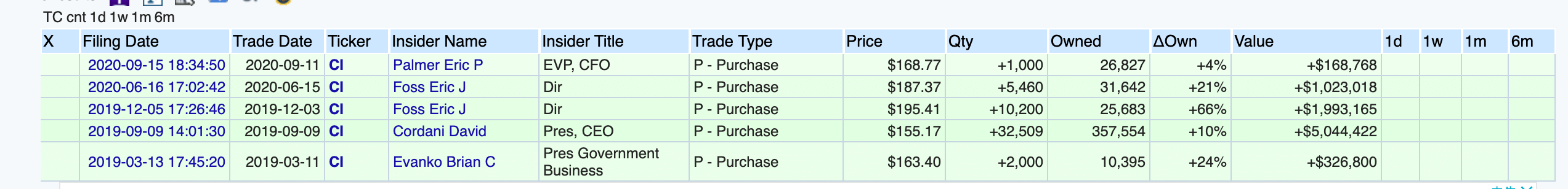 Palmer Eric P, CFO at Cigna Corporation (CI) filled CI's stock on the Sep 9, 2020 at $168.77.